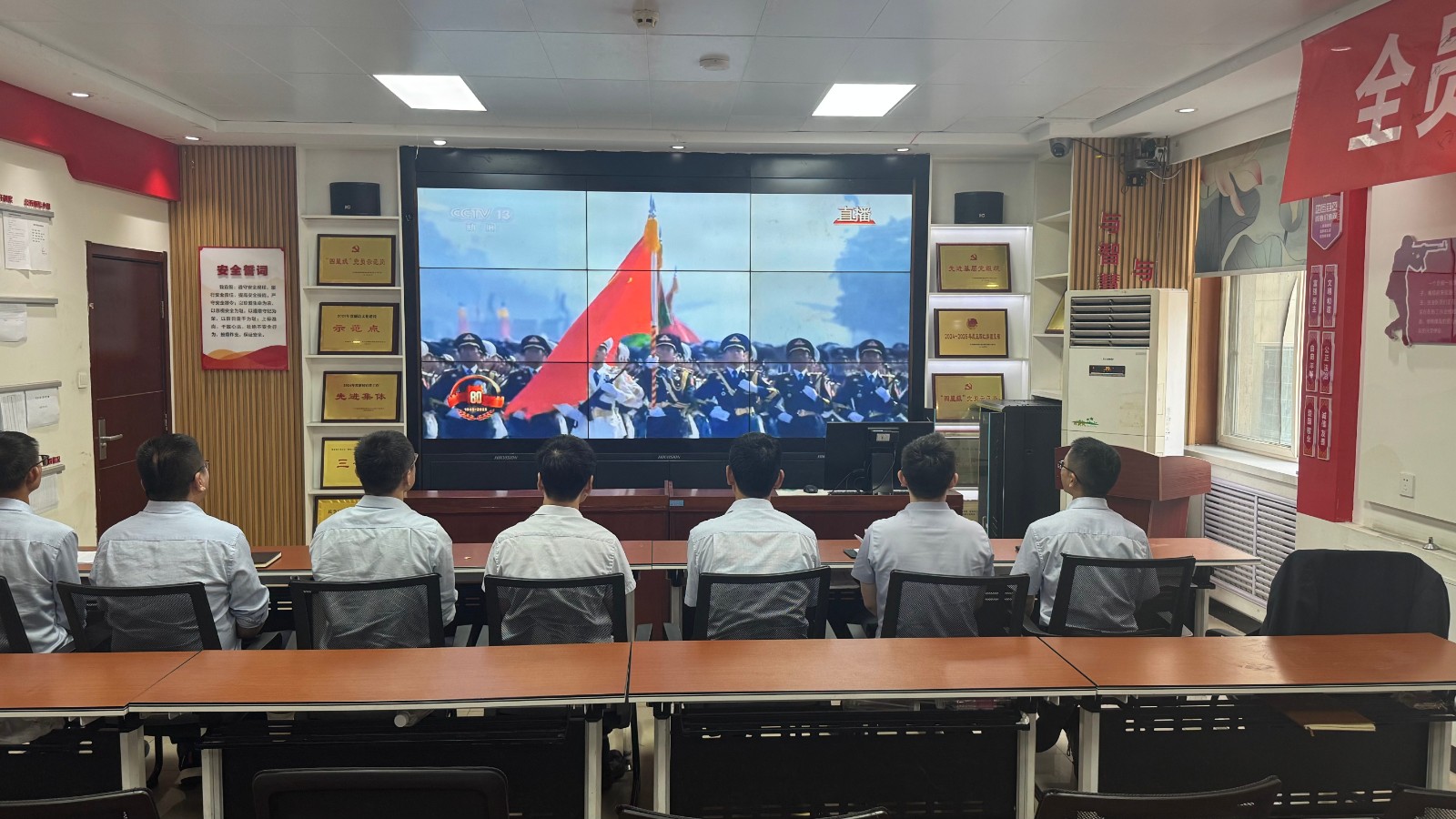 歷史燭照未來,精神永續(xù)傳承。為深切緬懷在抗日戰(zhàn)爭中英勇獻(xiàn)身的革命先烈,大力弘揚偉大的抗戰(zhàn)精神,引導(dǎo)全體黨員、職工銘記光輝歷史、堅定理想信念、強化責(zé)任擔(dān)當(dāng),9月3日,機運工區(qū)黨支部組織開展了“銘記歷史偉業(yè),傳承紅色基因”主題黨日活動,組織全體黨員集中觀看紀(jì)念中國人民抗日戰(zhàn)爭暨世界反法西斯戰(zhàn)爭勝利80周年閱兵儀式現(xiàn)場直播。上午九時整,機運工區(qū)全體黨懷著無比崇敬與激動的心情,目光齊聚屏幕。伴隨著激昂雄壯的國歌奏響,鮮艷的五星紅旗在天安門廣場冉冉升起,大家心潮澎湃,肅然起敬。隨后,規(guī)模宏大、氣勢磅礴的閱兵式正式開始。屏幕上,一個個整齊劃一、威武雄壯的徒步方隊,邁著鏗鏘有力、撼人心魄的步伐走過檢閱臺,堅毅的眼神、挺拔的身姿,充分展現(xiàn)了新時代軍人聽黨指揮的忠誠品格和能打勝仗的過硬本領(lǐng);一列列代表著國家科技實力與國防現(xiàn)代化建設(shè)最新成果的裝備方隊,鐵流滾滾,氣勢如虹,尖端武器依次亮相,彰顯了捍衛(wèi)國家主權(quán)、安全、發(fā)展利益的堅定決心與強大能力;雄鷹呼嘯,劃破長空,戰(zhàn)機編隊以精準(zhǔn)的隊形和磅礴的氣勢接受檢閱,描繪出壯美的藍(lán)天畫卷,宣示著捍衛(wèi)國家領(lǐng)空安全的鋼鐵意志。整個閱兵過程,秩序井然、威武雄壯、氣勢恢宏,生動詮釋了人民軍隊“聽黨指揮、能打勝仗、作風(fēng)優(yōu)良”的強軍目標(biāo),全方位展示了在黨的堅強領(lǐng)導(dǎo)下,國家日益強大的綜合國力和維護世界和平的堅定信念。屏幕前,黨員們?nèi)褙炞ⅲ瑹o不被這震撼人心的場面所感染,民族自豪感與榮譽感油然而生,現(xiàn)場不時響起由衷的贊嘆和熱烈的掌聲。通過本次“銘記歷史偉業(yè),傳承紅色基因”主題黨日活動,機運工區(qū)黨支部全體黨員經(jīng)歷了一次深刻的精神淬煉與思想升華。大家的歷史使命感、民族自豪感、崗位責(zé)任感得到顯著增強,紛紛表示以更加飽滿昂揚的精神狀態(tài)、更加求真務(wù)實的工作作風(fēng)、更加開拓創(chuàng)新的進(jìn)取意識,恪盡職守,銳意進(jìn)取,全力以赴保障原煤運輸安全高效,為工區(qū)及公司的持續(xù)高質(zhì)量發(fā)展貢獻(xiàn)全部力量!